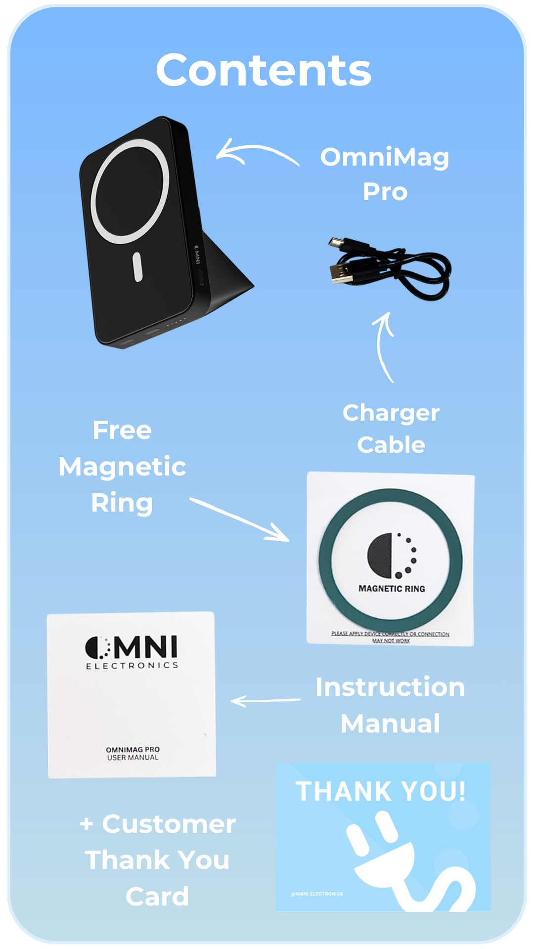The OmniMag Pro models come with a USB to USB-C charging Cable.